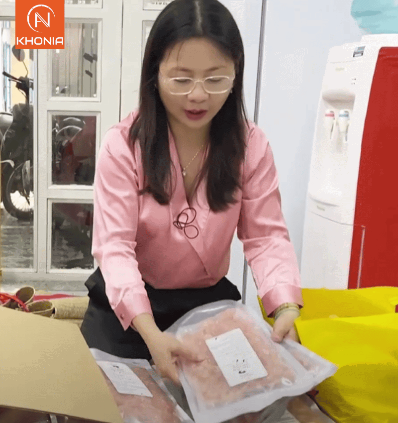 Hôm nay Út đóng 35kg tôm thẻ thiên nhiên cho anh Hoàng. Anh Hoàng đến công ty ăn thử sau đó chọn tôm thẻ thiên nhiên để biếu tặng sếp trong dịp hôm nay.
