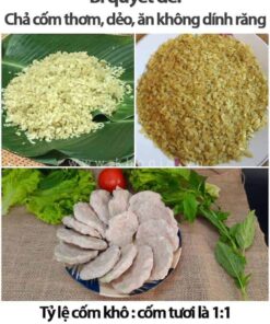 Chính vì vậy, cốm tươi và khô được dùng với tỷ lệ 1:1 thì món chả cốm ăn sẽ hài hòa. Ăn miếng chả cốm sẽ không bị dính răng và vẫn đảm bảo độ dai của chả.