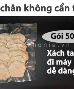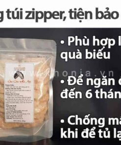 Sau khi hút chân không túi 500g, chả cốm được đóng vào túi zipper lịch sự để anh chị làm quà biếu cho người thân.