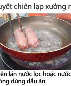 Bí quyết để chiên lạp xưởng ngon là anh chị chiên lăn nước lọc hoặc nước dừa. Anh chị đừng chiên bằng dầu ăn cây lạp xưởng sẽ béo ăn không ngon.