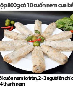 Mỗi hộp nem là 10 thanh nem năng 800g, mỗi thanh nem khá to và dài nên 2 -3 người ăn chỉ cần 3 -4 thanh nem là đủ anh chị nha.